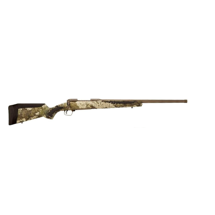 The biggest bulls. The longest shots. With the new Savage® 110 High Country, they’re all within your reach. The rifle is built to maximize accuracy with a spiral-fluted barrel and bolt, as well as the Model 110 action secured three-dimensionally along its entire length within the AccuStock™ internal chassis. The AccuFit™ system lets hunters customize length-of-pull and comb height of the TrueTimber® Strata synthetic stock. Plus, the user-adjustable AccuTrigger™ offers a crisp, clean pull critical for making precise shots at extreme distances. The Cerakote finish on the barrel and receiver protects against corrosion and heat to withstand the toughest terrain and weather conditions.