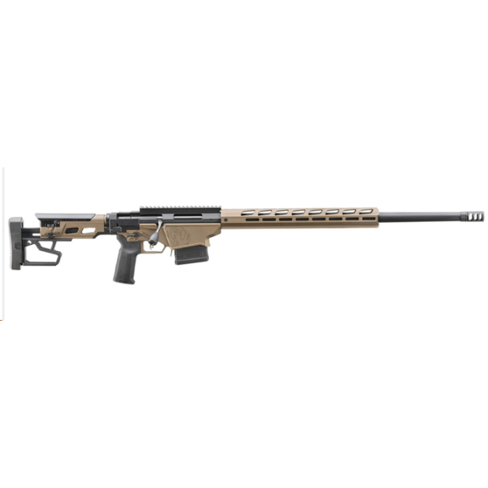 - Heavy-contour (.850" at the muzzle) barrel features a Ruger Precision Rifle muzzle brake to effectively reduce recoil while minimizing noise and blast to the sides of the shooter.