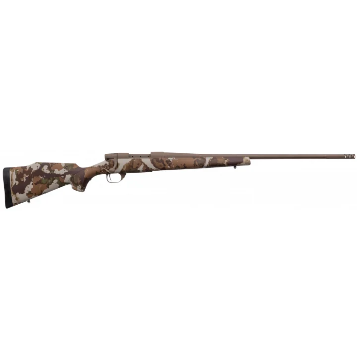 he first thing you’ll notice about the Vanguard First Lite Spector, aside from Weatherby’s legendary fit and finish, is the stock. The Monte Carlo design, complete with a right-side palm swell and textured forearm and grip areas, is appointed with innovative First Lite Spector camo.