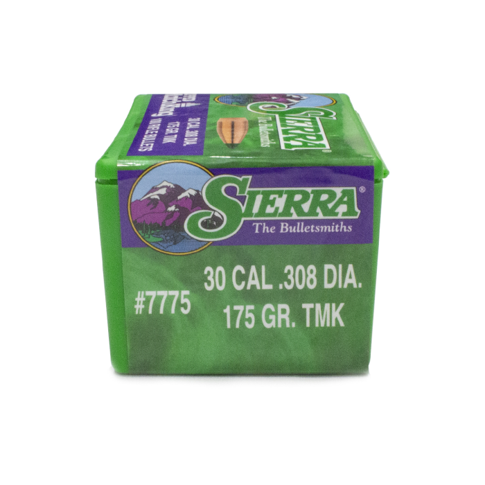 The 175 grain 30 caliber MatchKing (#2275) was created to allow .308 Winchester shooters to stay supersonic at 1,000 yards. The popularity this advantage created made adding the 175 grain Tipped MatchKing (TMK) bullet a necessity. The 175 grain Tipped MatchKing (TMK) bullet is an excellent choice for F-Class (F Open) matches, as well as 3-Gun and various other competitions.