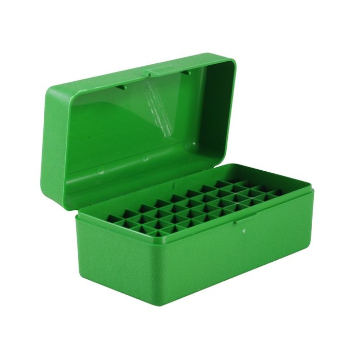 In the late 1960's, the original RS-S-50 was designed specifically for bench rest shooters. The CASE-GARD 50, which is available in eight sizes will hold .22 Hornet to 375 Remington Ultra Mag., with each cartridge resting in its own individual compartment. Each CASE-GARD 50 ammo box is supplied with a load label for recording load and sight data.