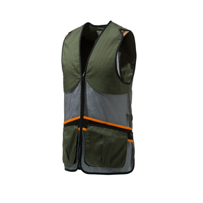 Whether in the heat of competition or just practicing out on the range, Beretta's full mesh shooting vest will help keep you cool and focused. This revolutionary cotton shooting vest leverages strategically placed, breathable mesh on the front and back to allow cool air to pass through -- even during the warmest of days. There are two front pockets to hold your cartridges and there are even inner security pockets to hold your valuables and a Beretta recoil reducer.