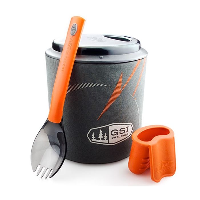 The Halulite Minimalist II Cookset integrates everything you need for making hot meals and warm drinks when backpacking to the extreme. An efficient and ultralight hard anodized camping integrated cookware set. Efficient, ultra-light and compact hard-anodized camping cookware set 20 fl oz. (0.6 liter) pot, insulated cozy and sip-it lid with Folding Foon. An innovative ultra-compact gripper protects fingers while removing pot from stove and serves as a convenient utensil holder. It also sticks magnetically to side of fuel canister while not in use. Dual-function, Nylon 6-6 lid serves as pot lid while heating and a sip-it top while drinking, helping to save fuel and keep hot beverage heated longer. This set nests together with enough room to store a Pinnacle Canister Stove and 110g-fuel canister.